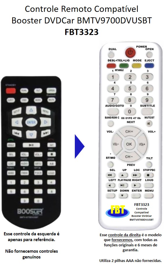 Controle Remoto Compatível Booster DVDCar BMTV9700DVUSBT FBT3323