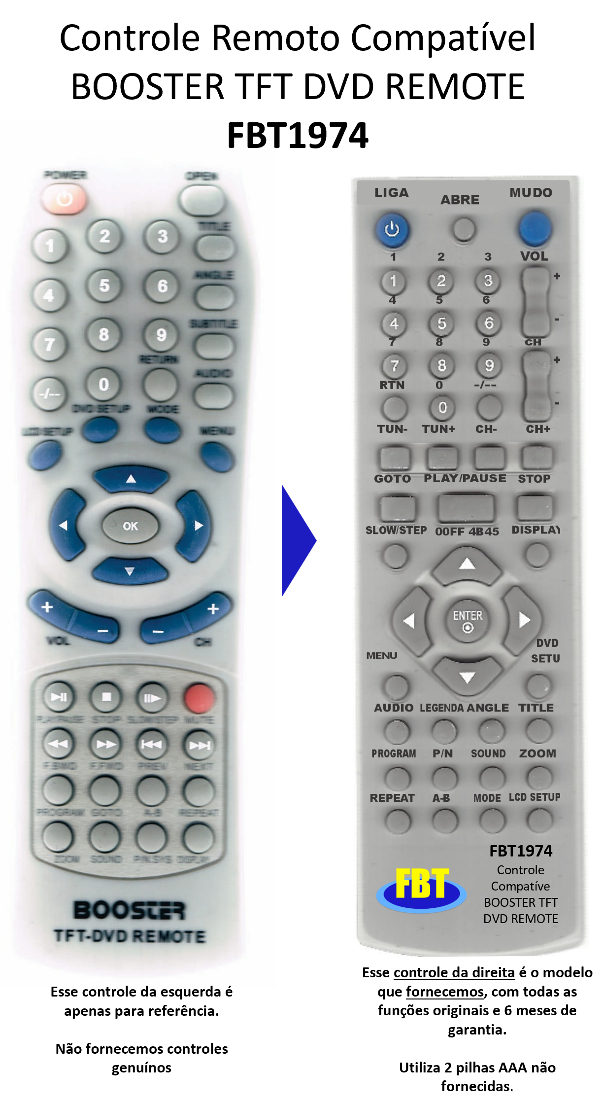 Controle Remoto Compatível BOOSTER TFT DVD REMOTE FBT1974