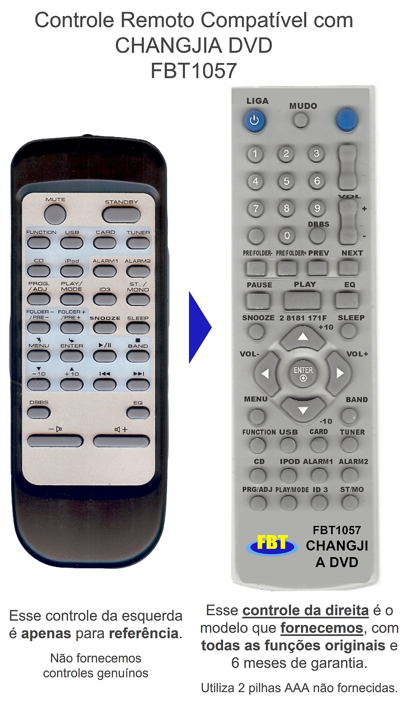 Controle Remoto Compatível com CHANGJIA DVD FBT1057