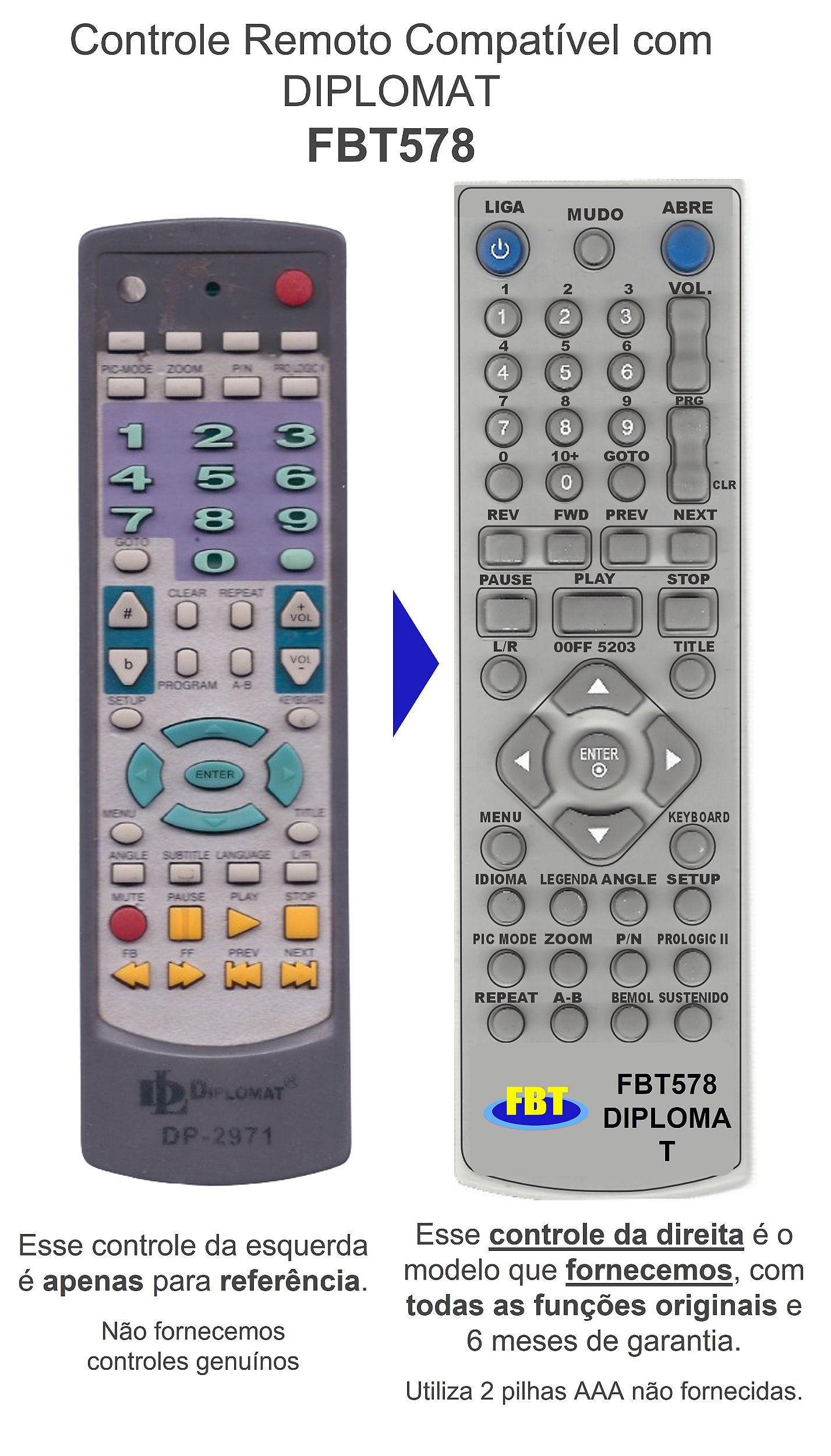 Controle Remoto Compatível com DIPLOMAT FBT578