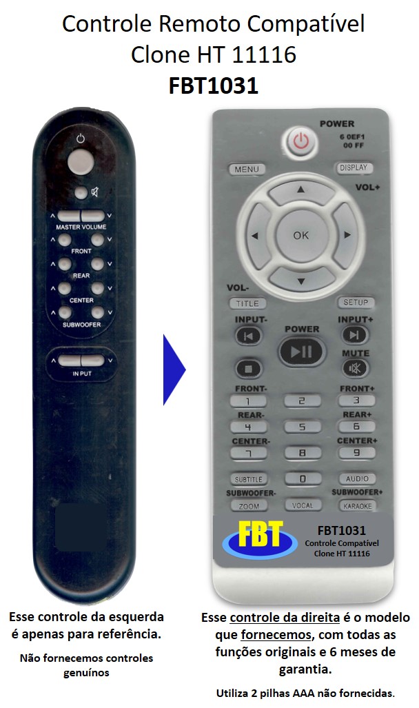 Controle Remoto Compatível Com HOME CLONE FBT1031