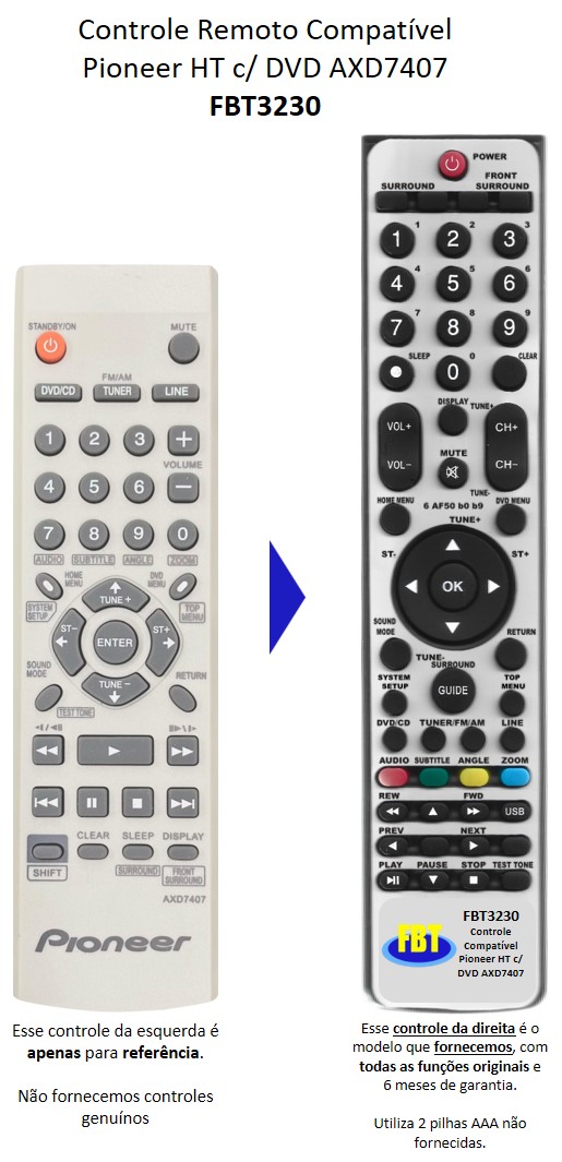 Controle Remoto Compatível Com Pioneer Receiver Dvd Axd7407 Fbt3230