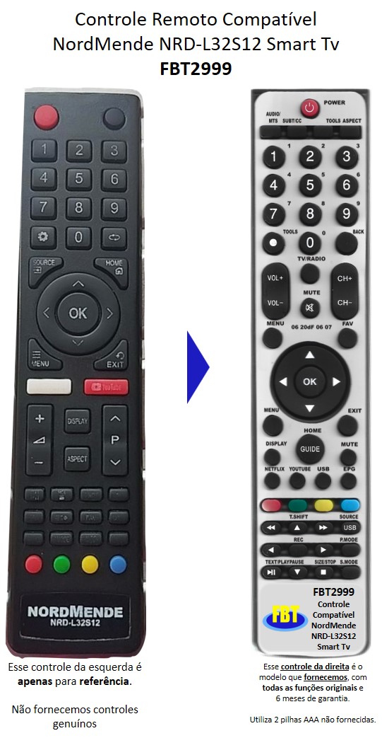 Controle Remoto Compatível Com SMART TV Nordmende NRD-L32S12 V2 FBT2999