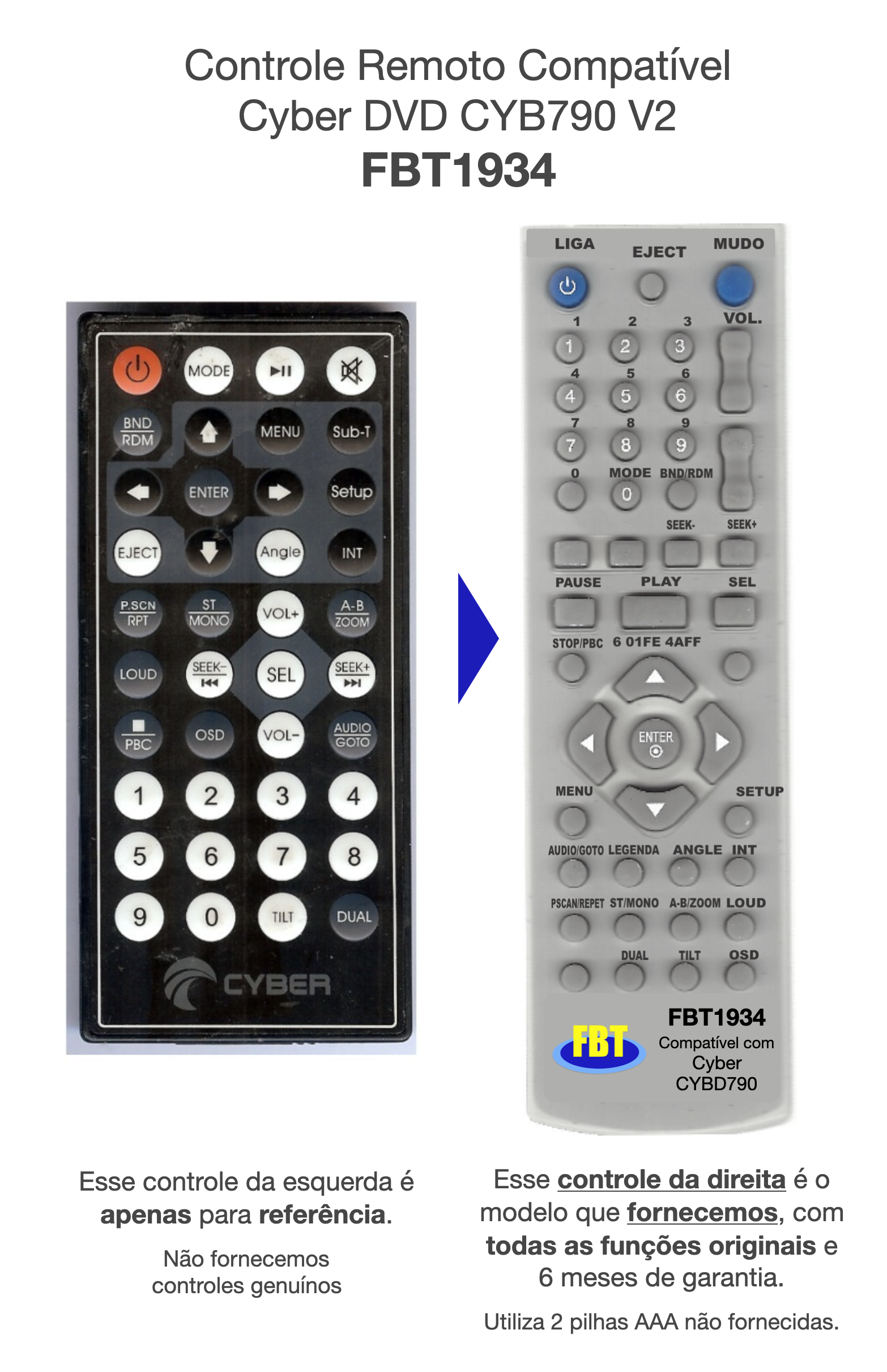 Controle Remoto Compatível Cyber DVD CYB790 V2 FBT1934
