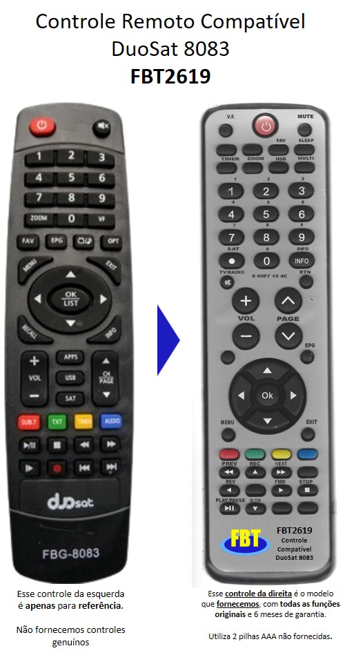 Controle Remoto Compatível DuoSat 8083 FBT2619