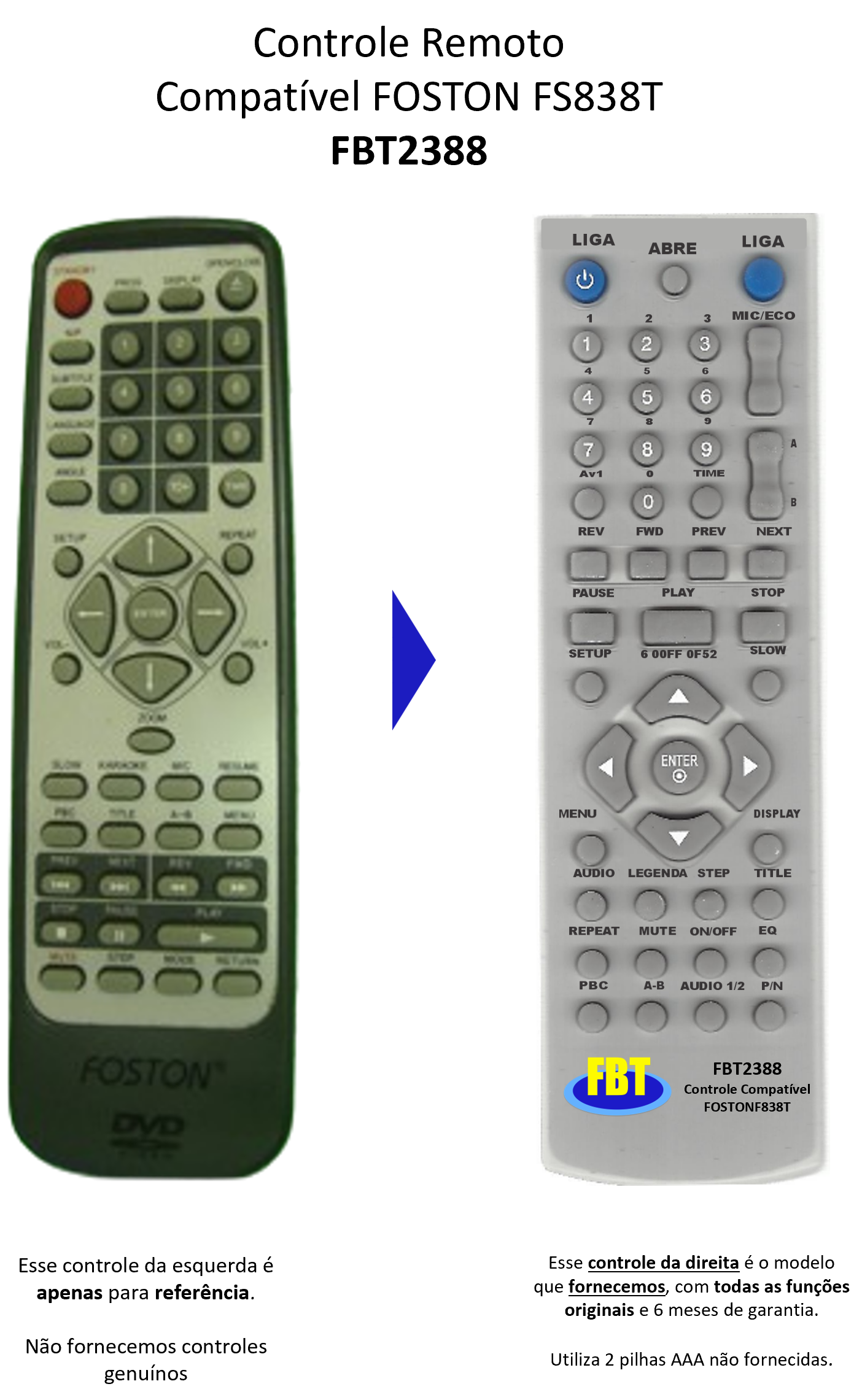 Controle Remoto Compatível FOSTON FS838T FBT2388