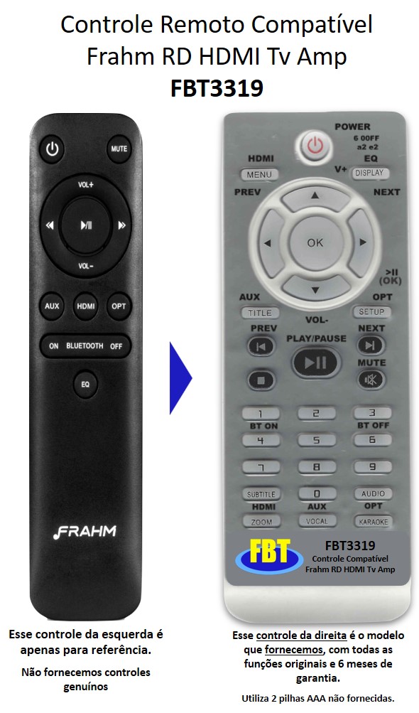 Controle Remoto Compatível Frahm RD HDMI Tv Amp FBT3319