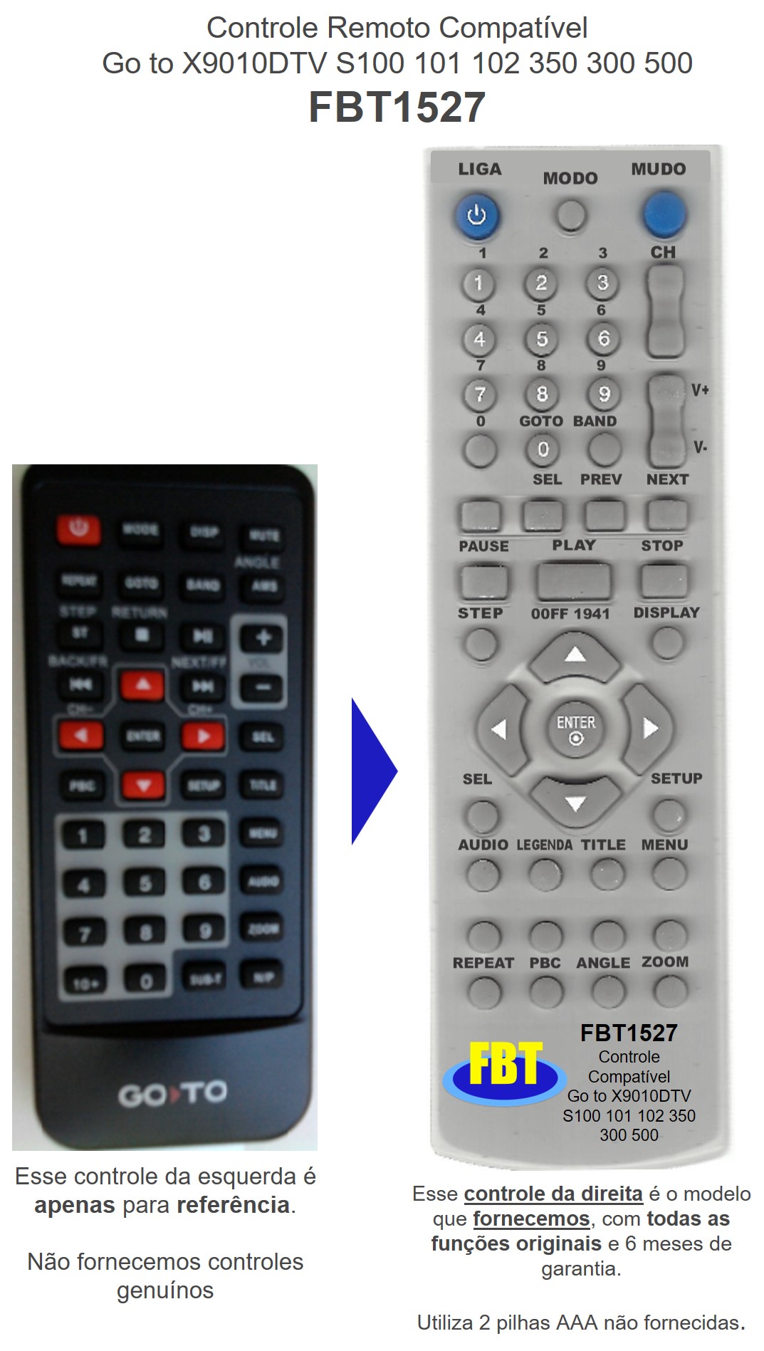 Controle Remoto Compatível Go To X9010DTV S100 101 102 350 300 500 FBT1527