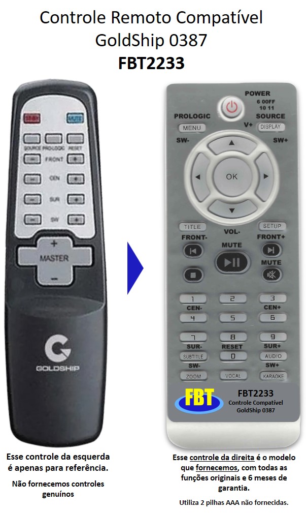 Controle Remoto Compatível GoldShip HT0387 FBT2233