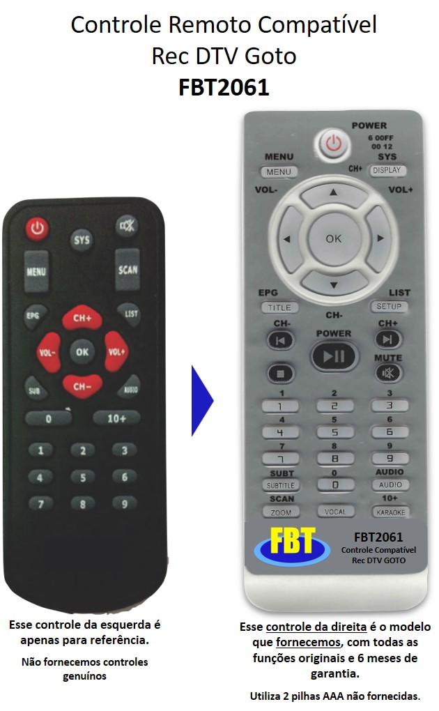 Nós vendemos e produzimos os controles remotos compatíveis com visual diferente, totalmente funcional e com 6 meses de garantia e reposição permanente.