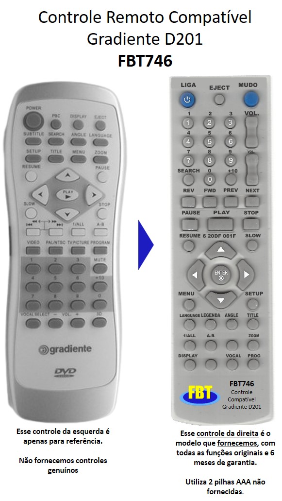 Controle Remoto Compatível Gradiente Dvd D201 FBT746