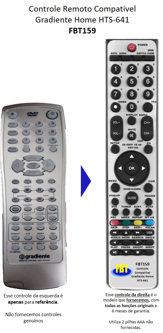 Controle Remoto Compatível Gradiente HTS641 FBT159