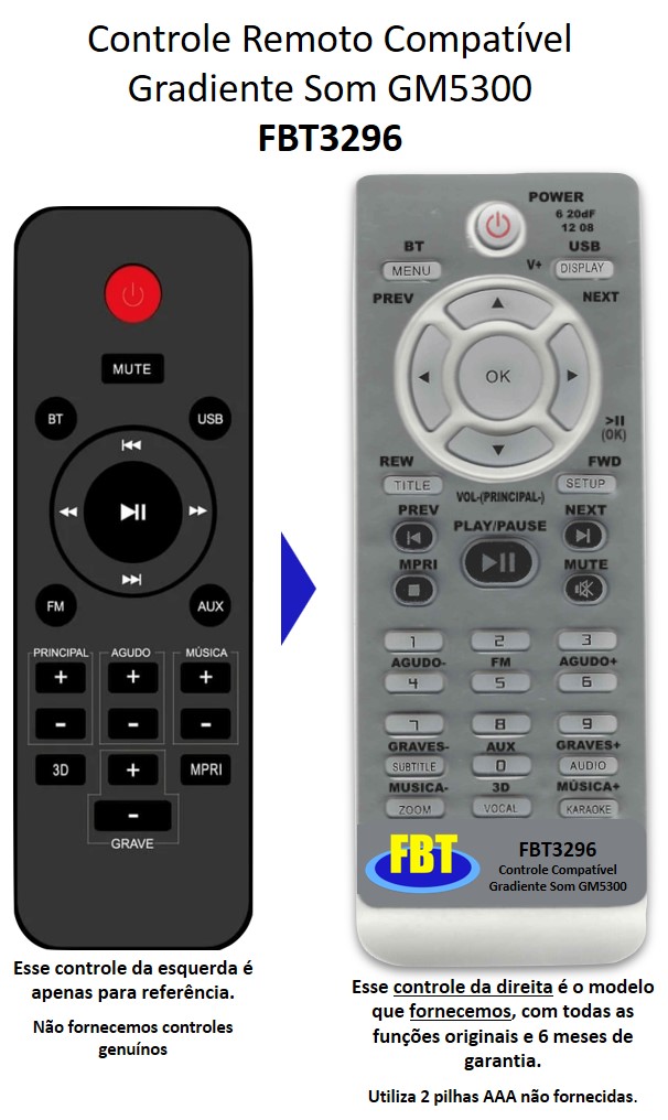 Controle Remoto Compatível Gradiente Som GM5300 FBT3296
