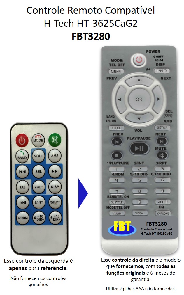 Fornecemos apenas o controle compatível (controle remoto que está a direita da imagem).