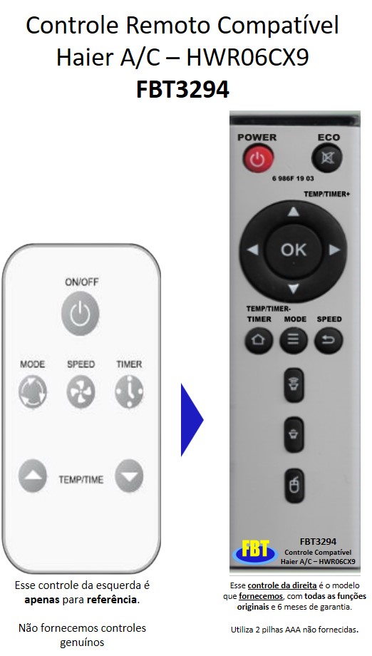 Controle Remoto Compatível Haier A/C – HWR06CX9 FBT3294