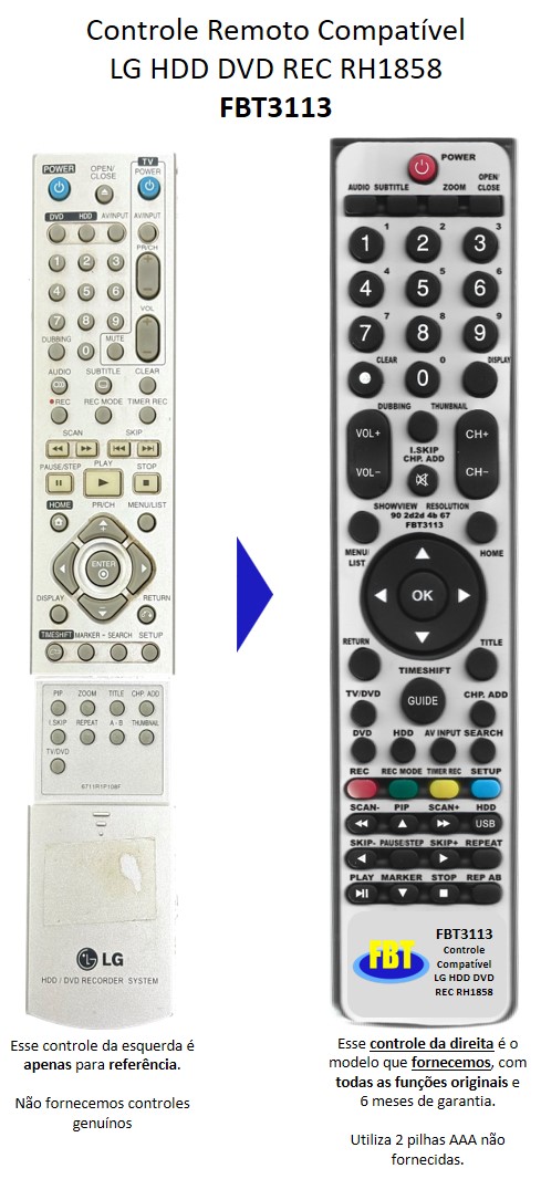 Controle Remoto Compatível HDD DVD Recorder RH1858 FBT3113