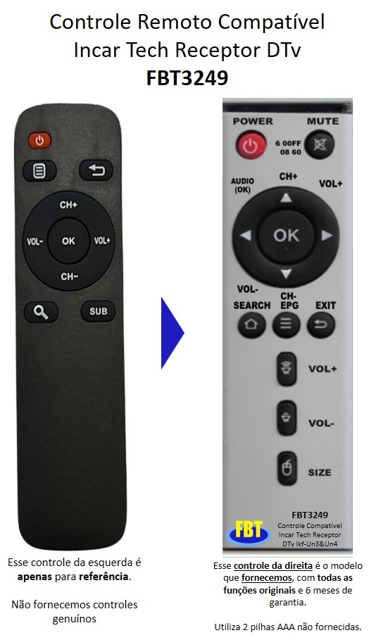 Fornecemos apenas o controle compatível (controle remoto que está a direita da imagem).