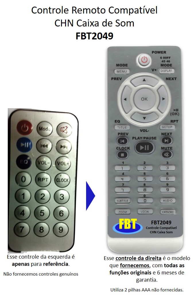 Fornecemos apenas o controle compatível (controle remoto que está a direita da imagem).