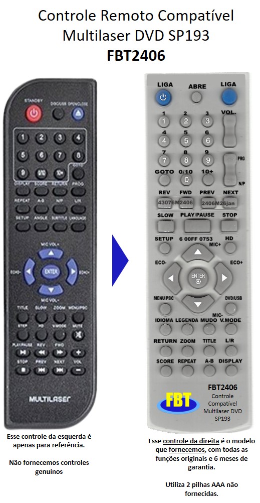 Compatibilidade com os seguintes modelos: Multilaser Dvd Sp193