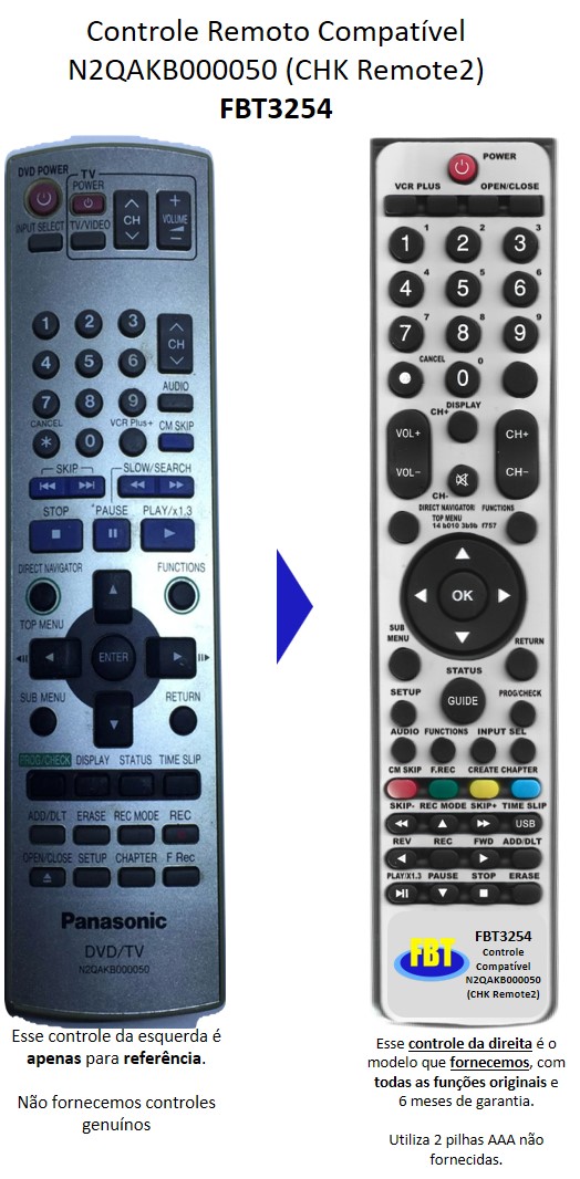 Controle Remoto Compatível N2QAKB000050 (CHK Remote2) FBT3254