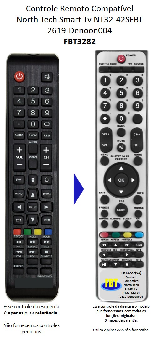 Controle Remoto Compatível North Tech Smart Tv NT32-42SFBT 2619-Denoon004 FBT3282