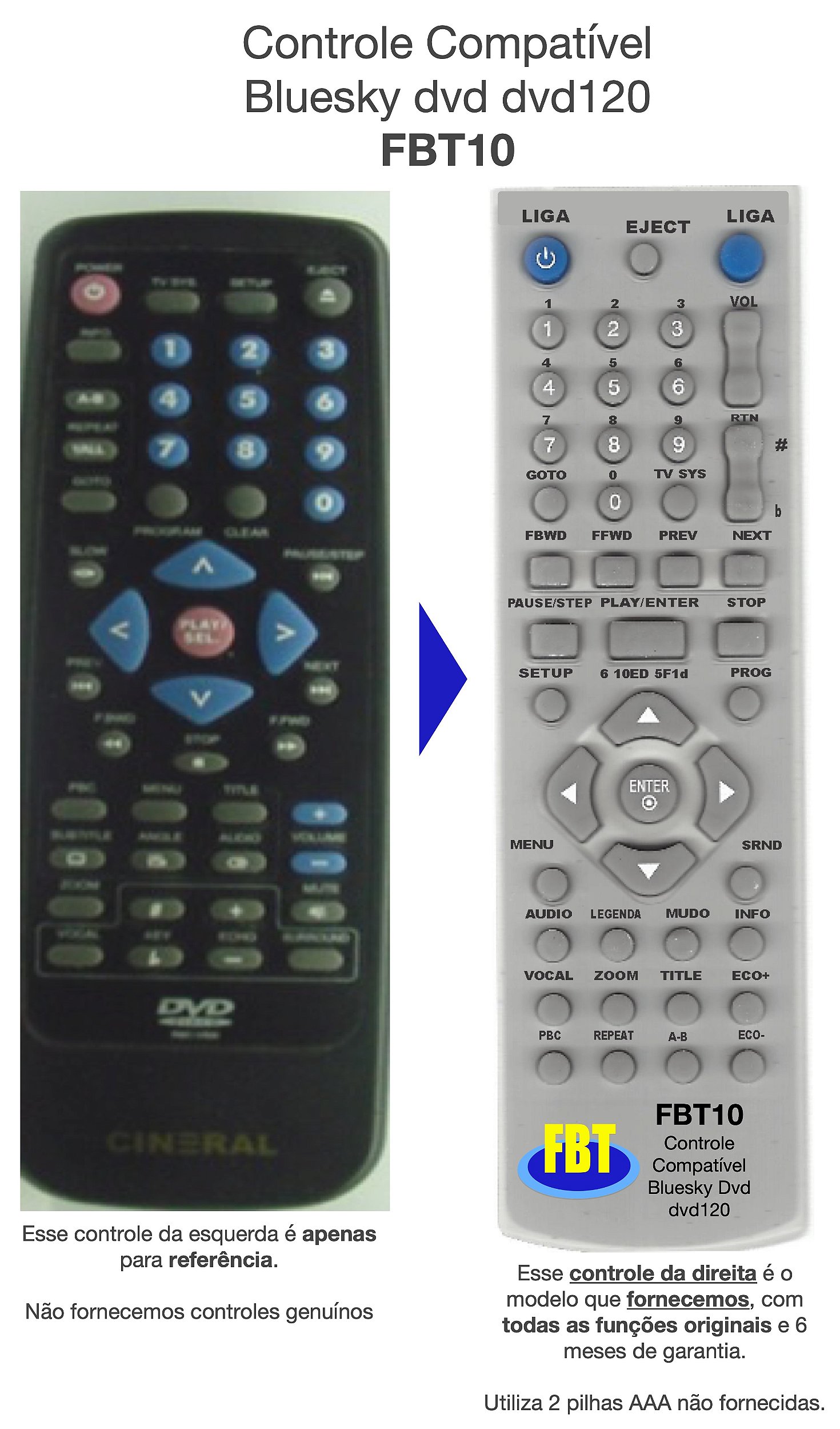 Controle Remoto Compatível P/ Bluesky dvd dvd120 FBT10