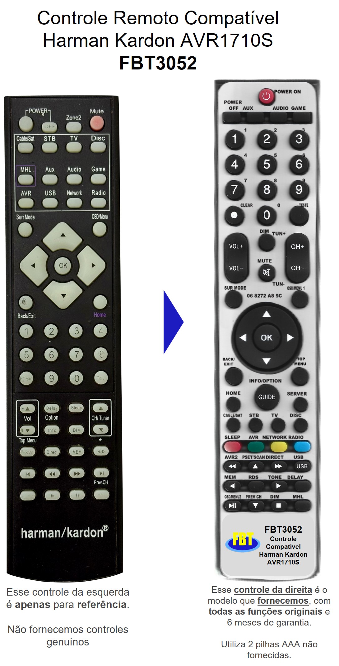 Controle Remoto Compatível p/ Harman Kard AVR-1710S FBT3052