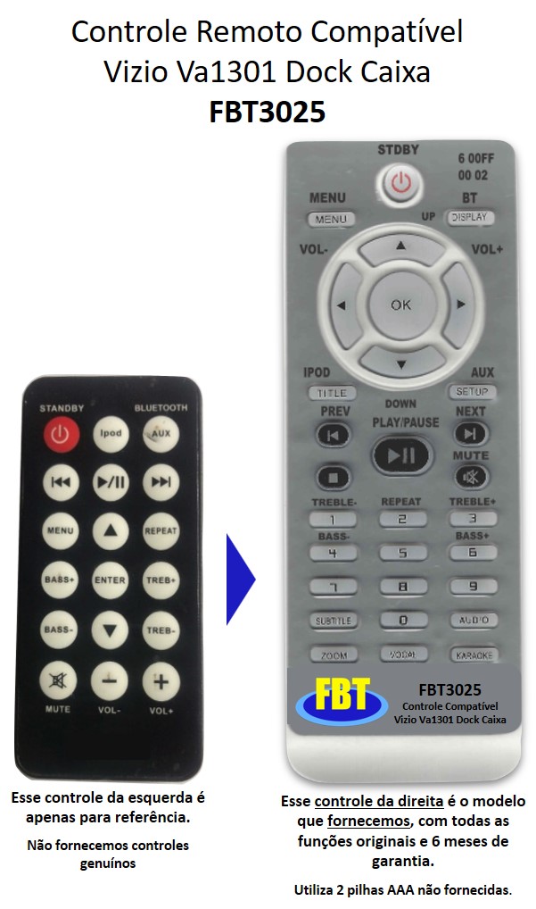 Controle Remoto Compatível P/ Vizio VA1301 Dock Caixa FBT3025