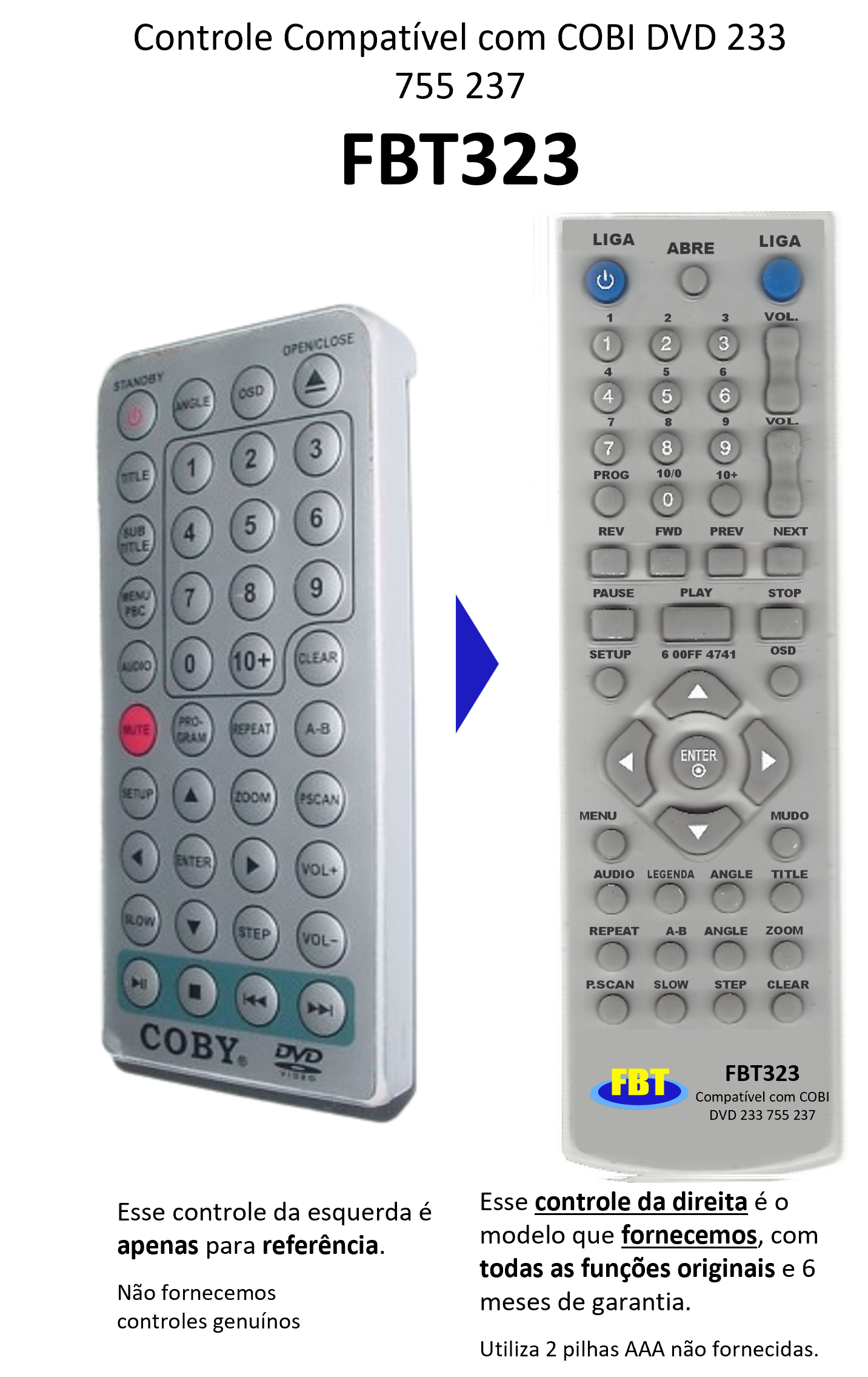 Controle Remoto Compatível Para Cobi Dvd 233 755 237 Fbt323