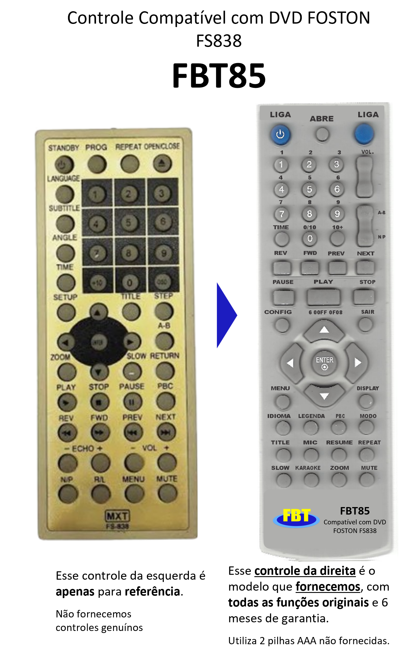 Controle Remoto Compatível Para Foston Fs838 Dvd Fbt85