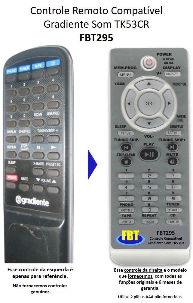 Controle Remoto Compatível para Gradiente Som TK 53CR FBT295