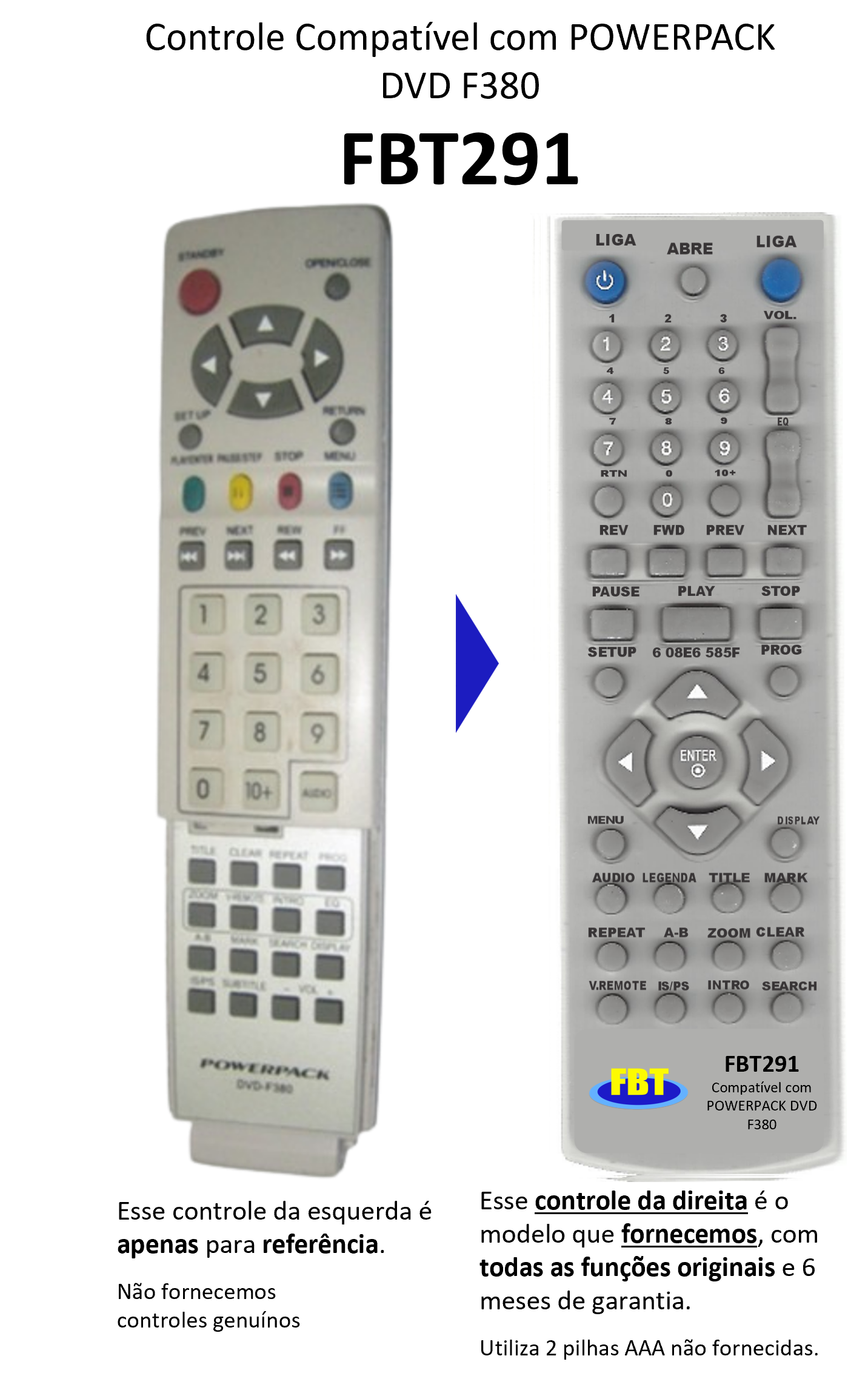 Controle Remoto Compatível Para Powerpack Dvd F380 Fbt291
