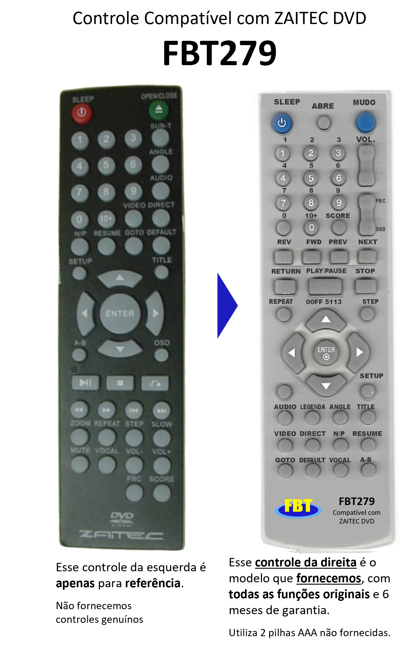 Controle Remoto Compatível Para Zaitec Dvd Fbt279