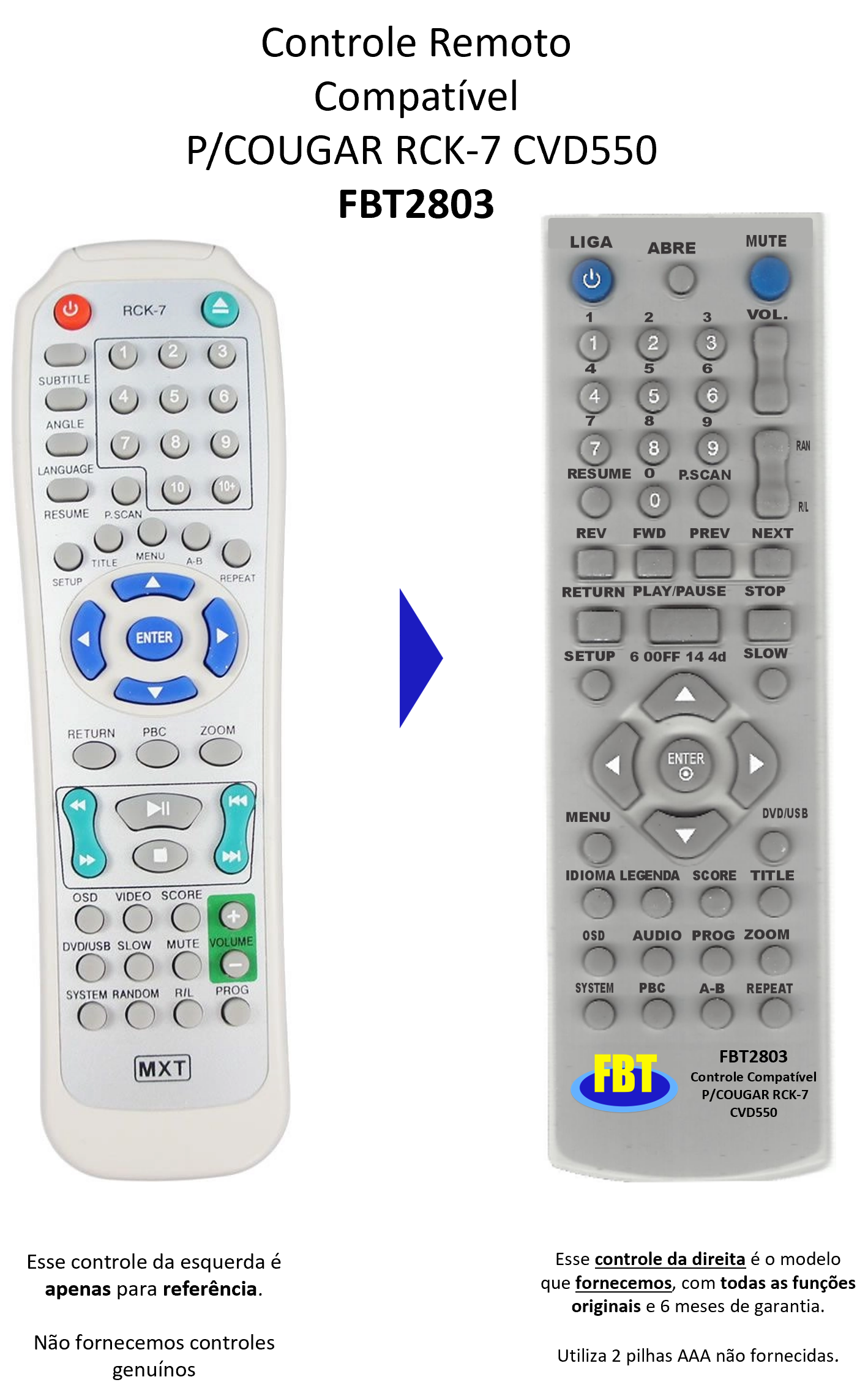 Observe que muitas marcas e modelos utilizam o mesmo controle remoto, mudando a cor do painel e a marca, preste MUITA ATENÇÃO no FORMATO do controle, se as FUNÇÕES das TECLAS são IGUAIS, como também em suas POSIÇÕES ao teu original, dessa forma facilita na busca do teu controle remoto.
