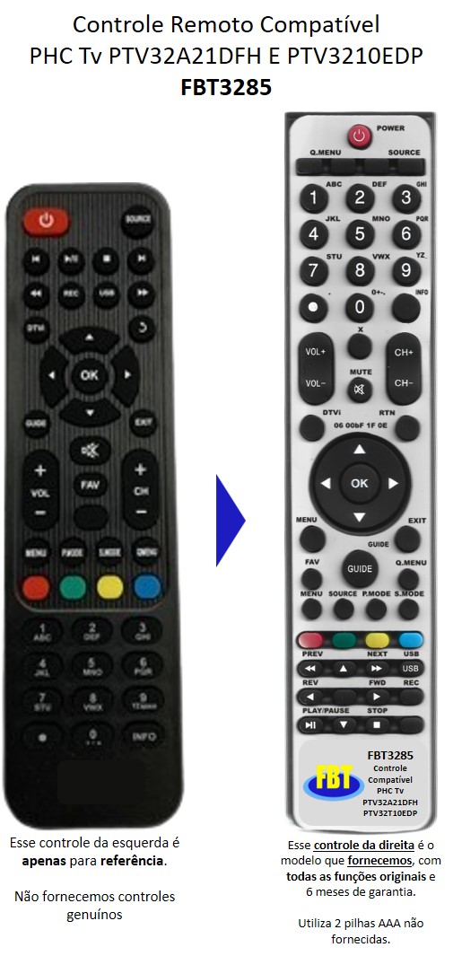 Controle Remoto Compatível PHC Tv PTV32A21DFH E PTV3210EDP FBT3285