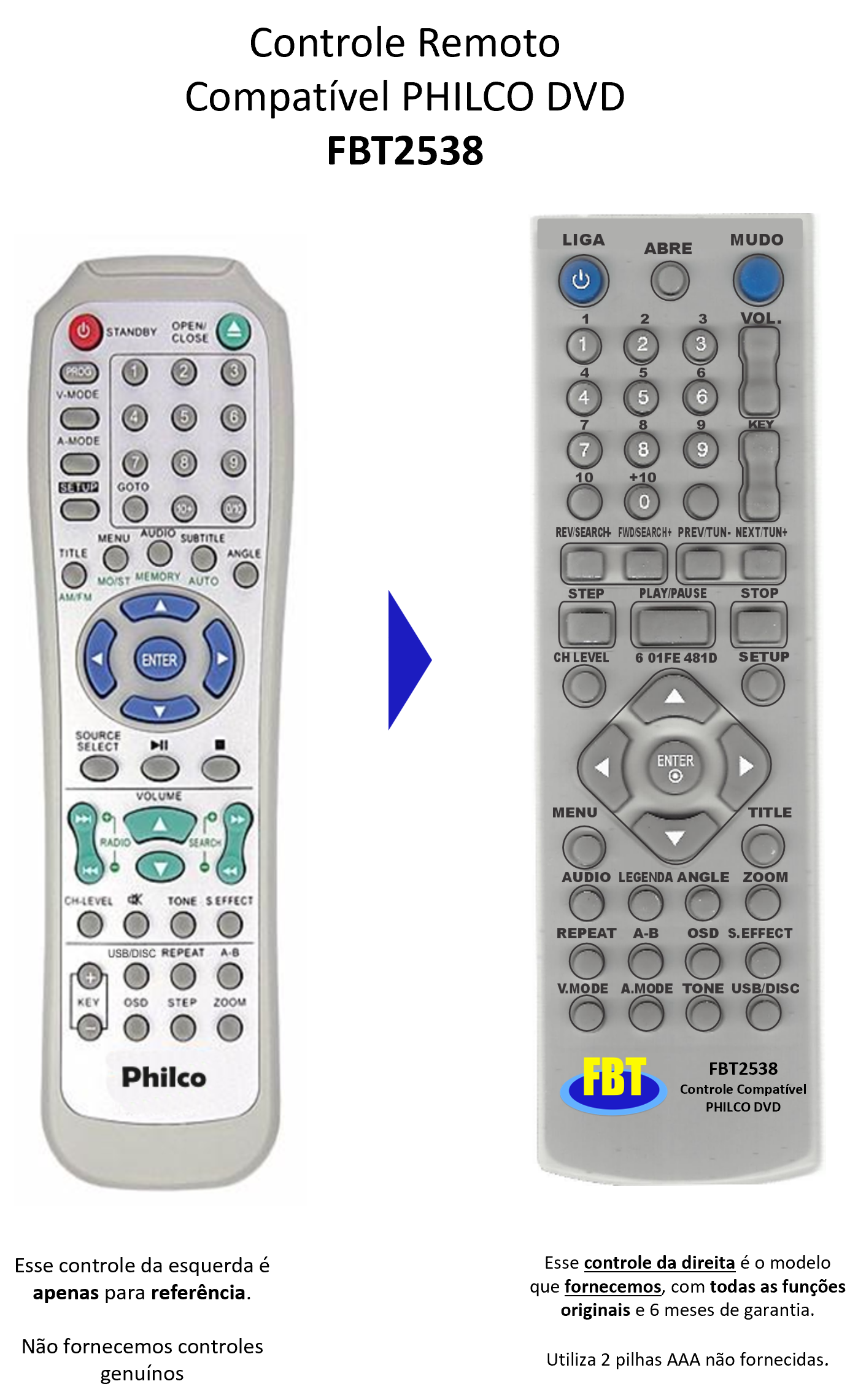 Fornecemos apenas o controle compatível (controle remoto que está a direita da imagem).