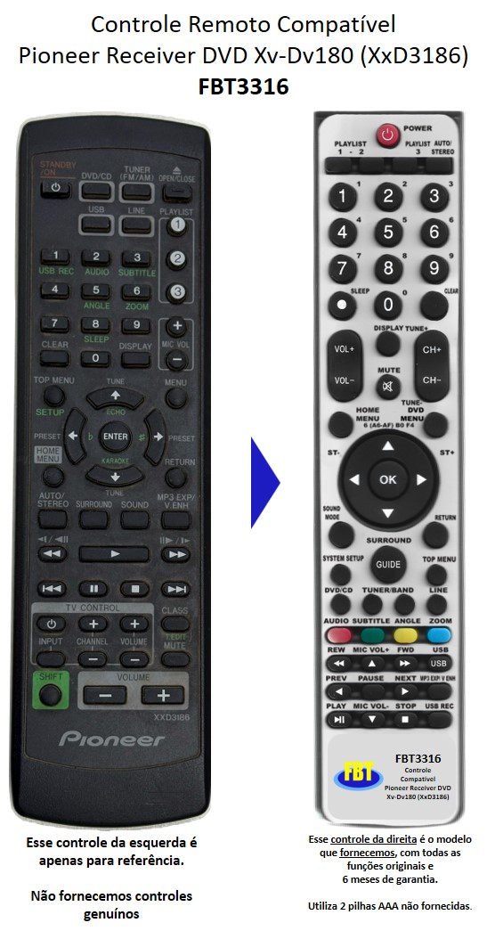 Fornecemos apenas o controle compatível (controle remoto que está a direita da imagem).