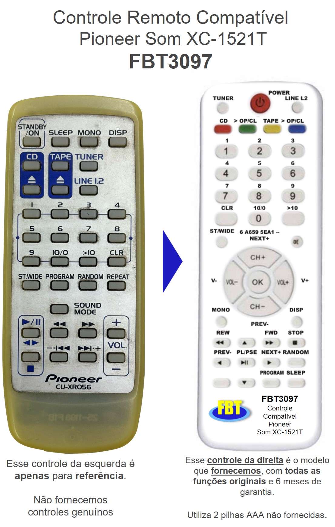 Controle Remoto Compatível Pioneer Som XC-1521T FBT3097