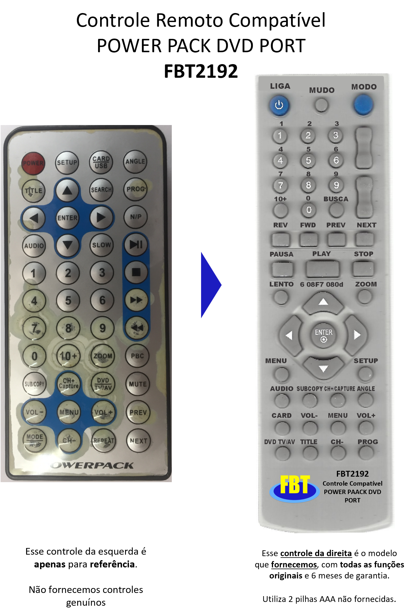Controle Remoto Compatível POWER PACK DVD PORT FBT2192