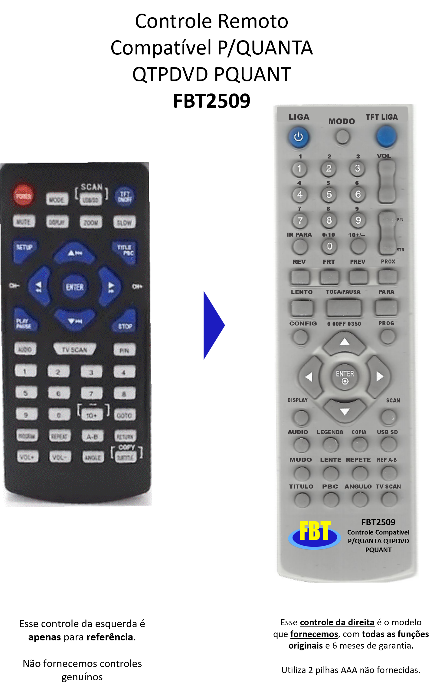 Controle Remoto Compatível P/QUANTA QTPDVD PQUANT FBT2509