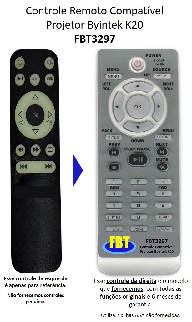 Controle Remoto Compatível Projetor Byintek K20 FBT3297