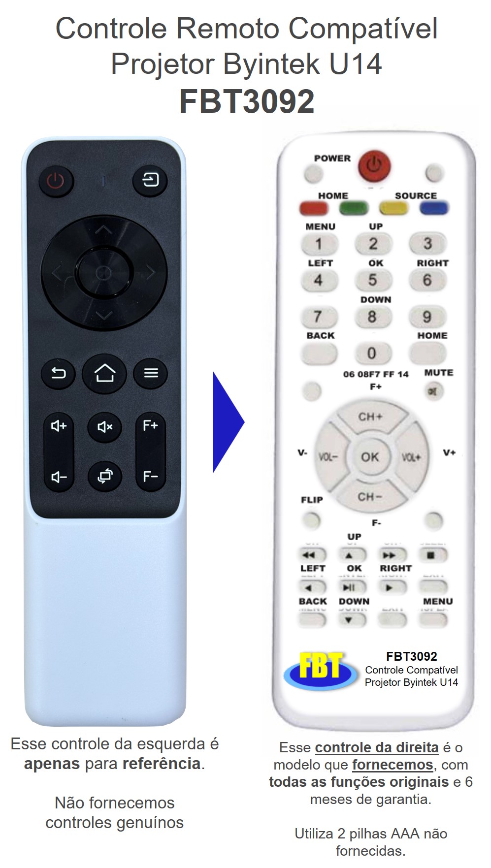 Controle Remoto Compatível Projetor Byintek U14 FBT3092