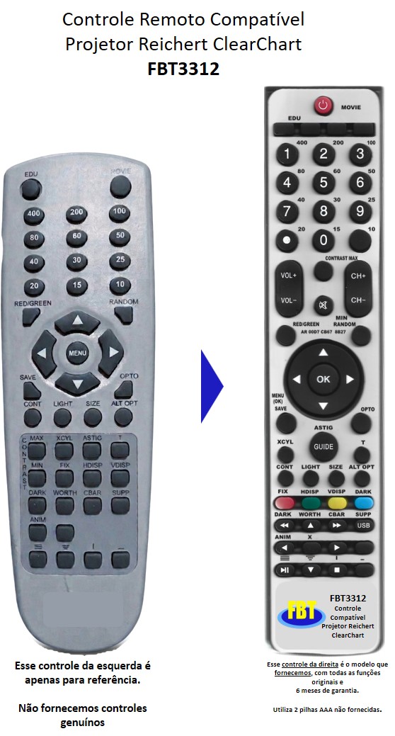 Controle Remoto Compatível Projetor Reichert ClearChart FBT3312