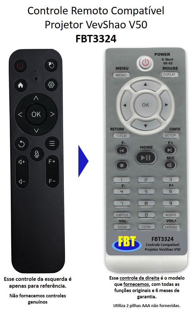 Controle Remoto Compatível Projetor VevShao V50 FBT3324