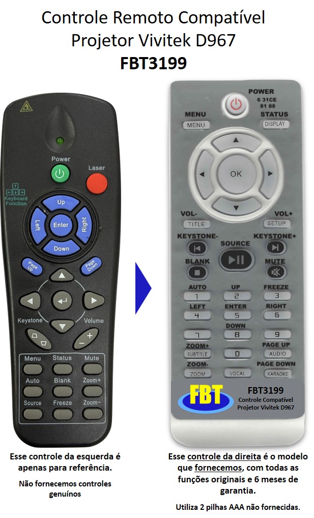 Controle Remoto Compatível Projetor Vivitek D967 D968HD D968U FBT3199