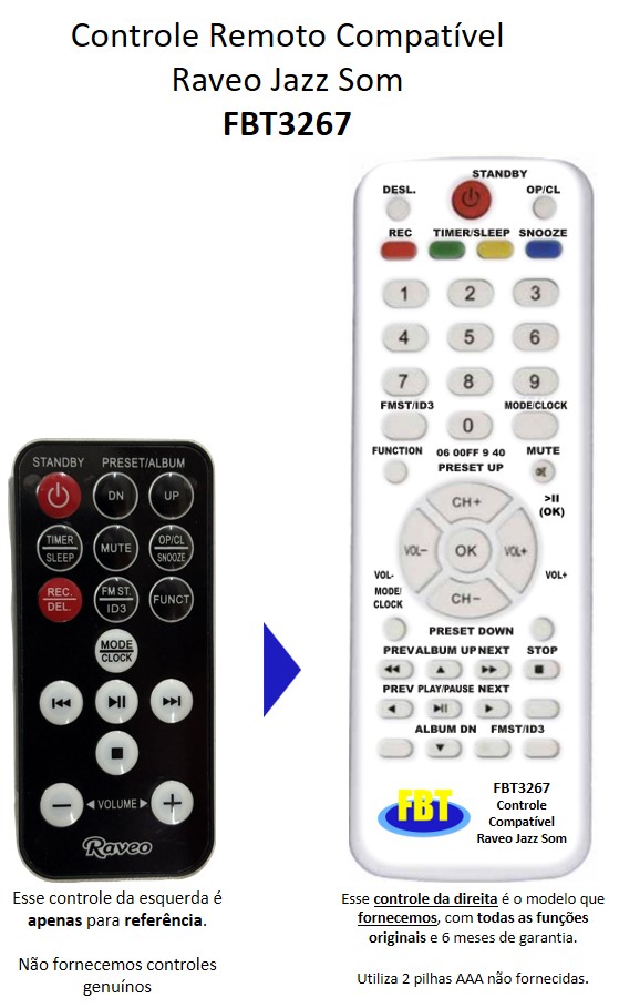Controle Remoto Compatível Raveo Jazz Som FBT3267