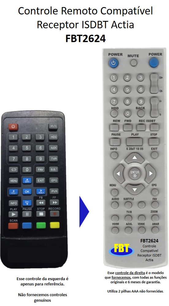 Fornecemos apenas o controle compatível (controle remoto que está a direita da imagem).