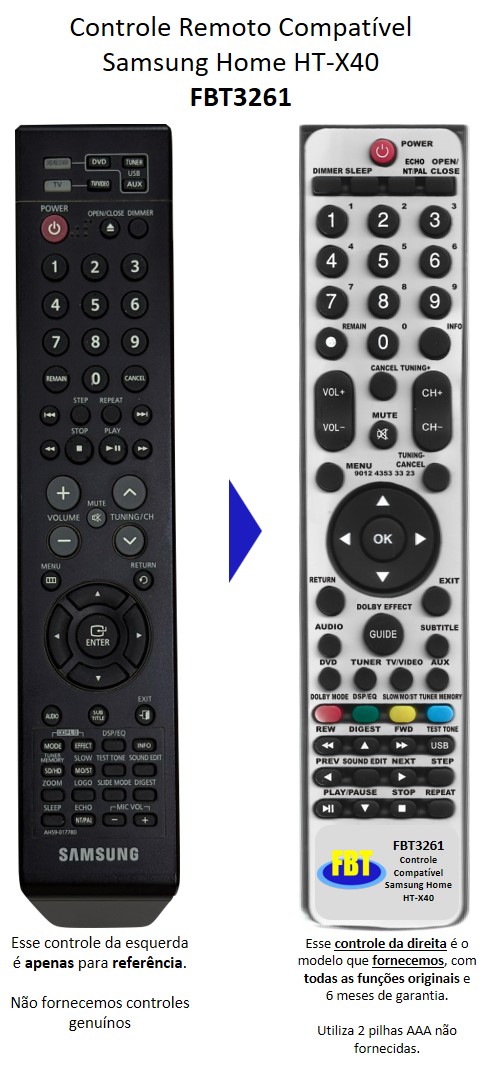 Controle Remoto Compatível Samsung Home HT-X40 FBT3261