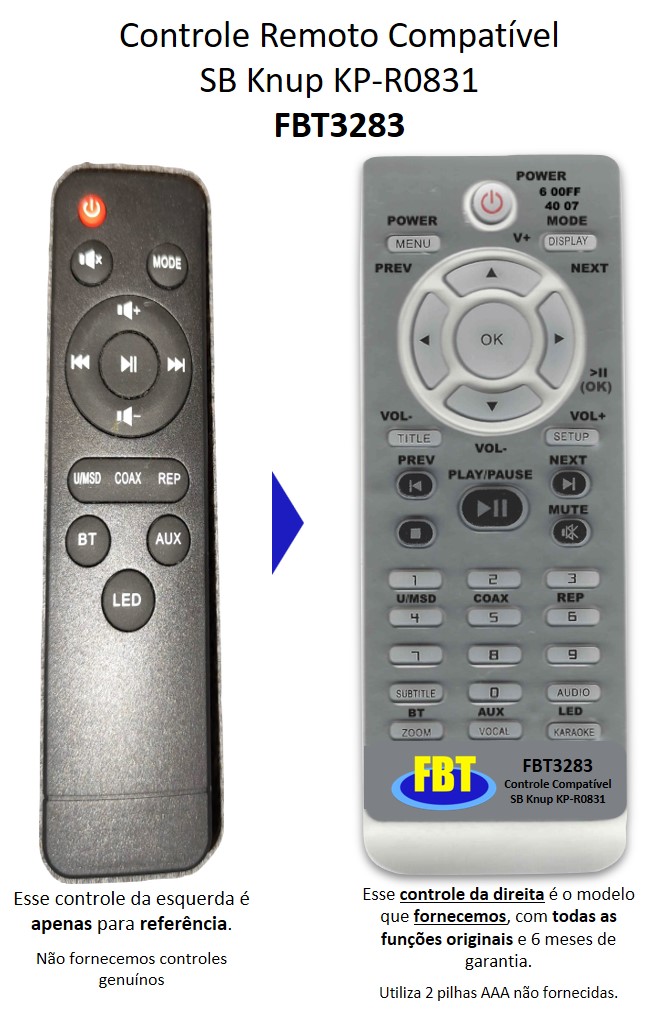 Fornecemos apenas o controle compatível (controle remoto que está a direita da imagem).