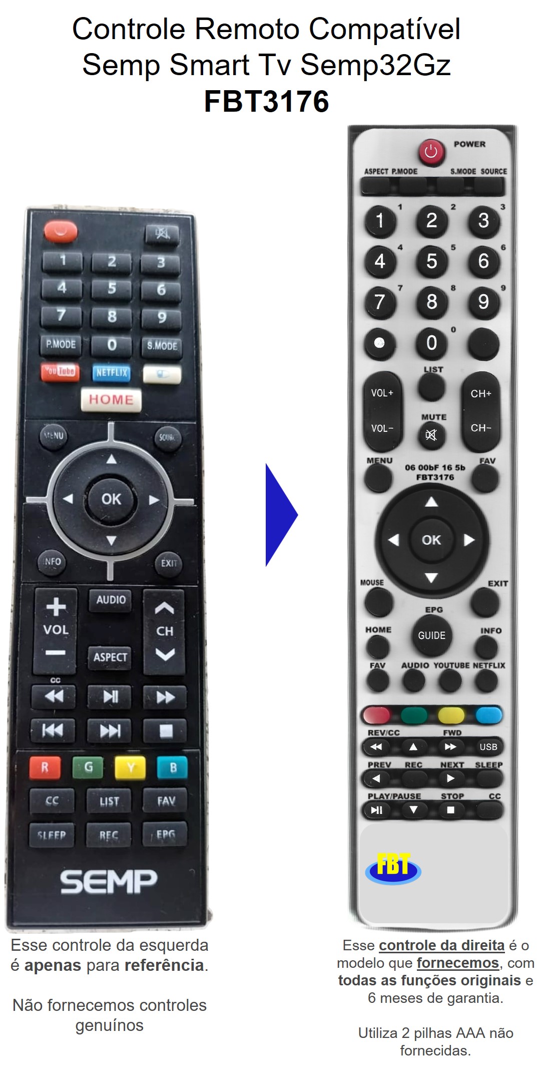 Controle Remoto Compatível Semp Tv SMP32GZ FBT3176